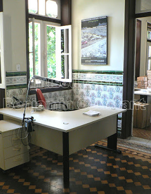parquet de madeiras nobres super trabalhados aos inúmeros azulejos nas paredes, tudo é belo, exclusivo, diferente e antigo. O pé direito alto (distância do piso ao teto), deixa o vento circular bem e as grandes janelas e portas - todas em profusão - têm um quê de passado encantador.